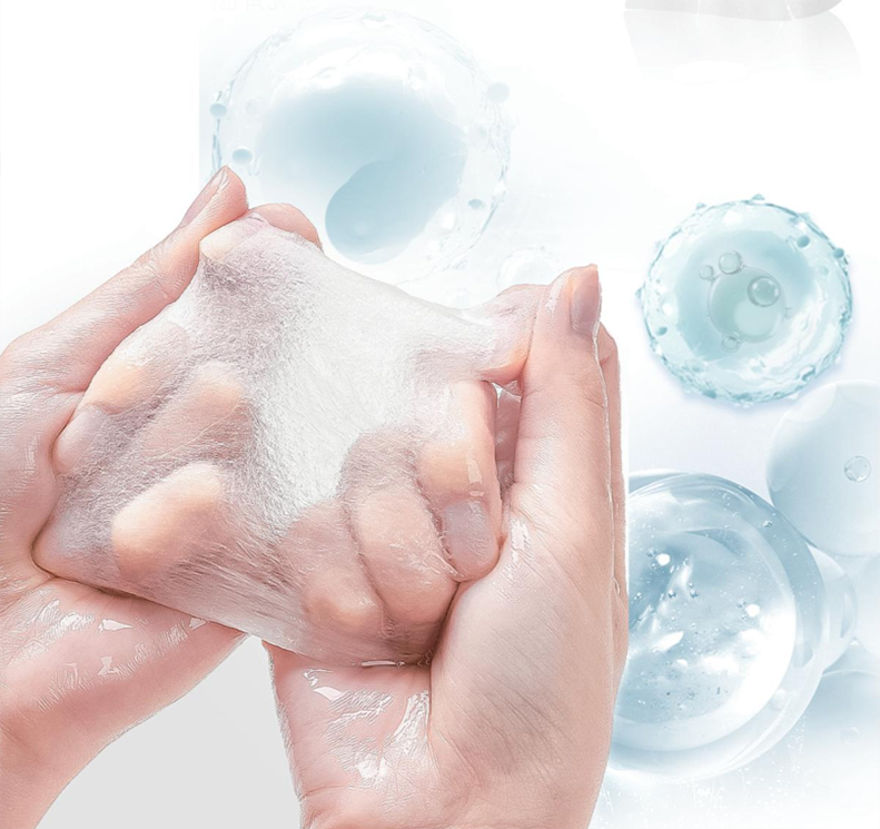 2.可吸收近 20倍于自身重量的水分,从而确保精华的自由渗透,使其迅速被皮肤吸收,涂抹时间越长,膜越薄。